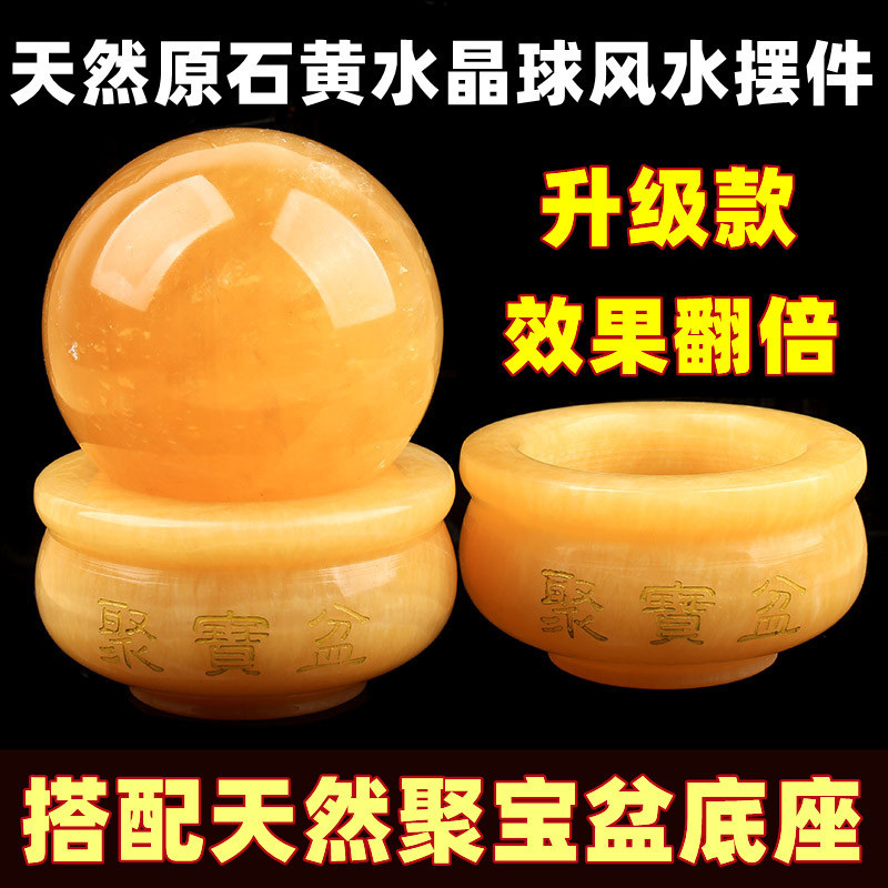 Натуральный желтый хрустальный шариковый орнамент Оригинальный от полированного полированного улучшения улучшения улучшения северо -западного угла кухни, основание Volks для основания богатства мяча Feng Shui