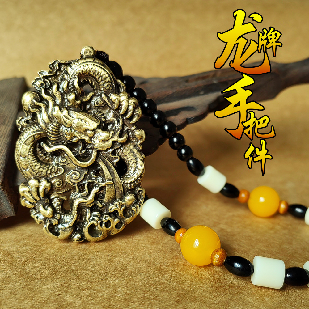 Ретро латунная двусторонная ручка, украшение в руку, подвеска, ключи от машины с застежкой
