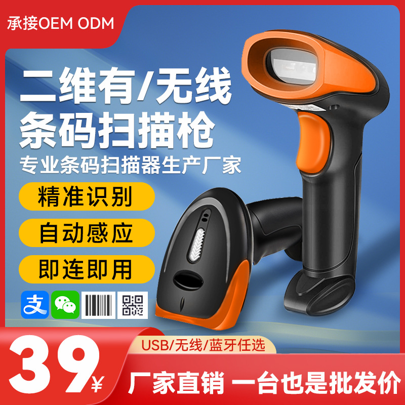 Сканировать код Gun Wired QR-код Беспроводной Bluetooth одномерный штрих-кодовый склад склада супермаркет кассир Специальный сканер Специальный сканер