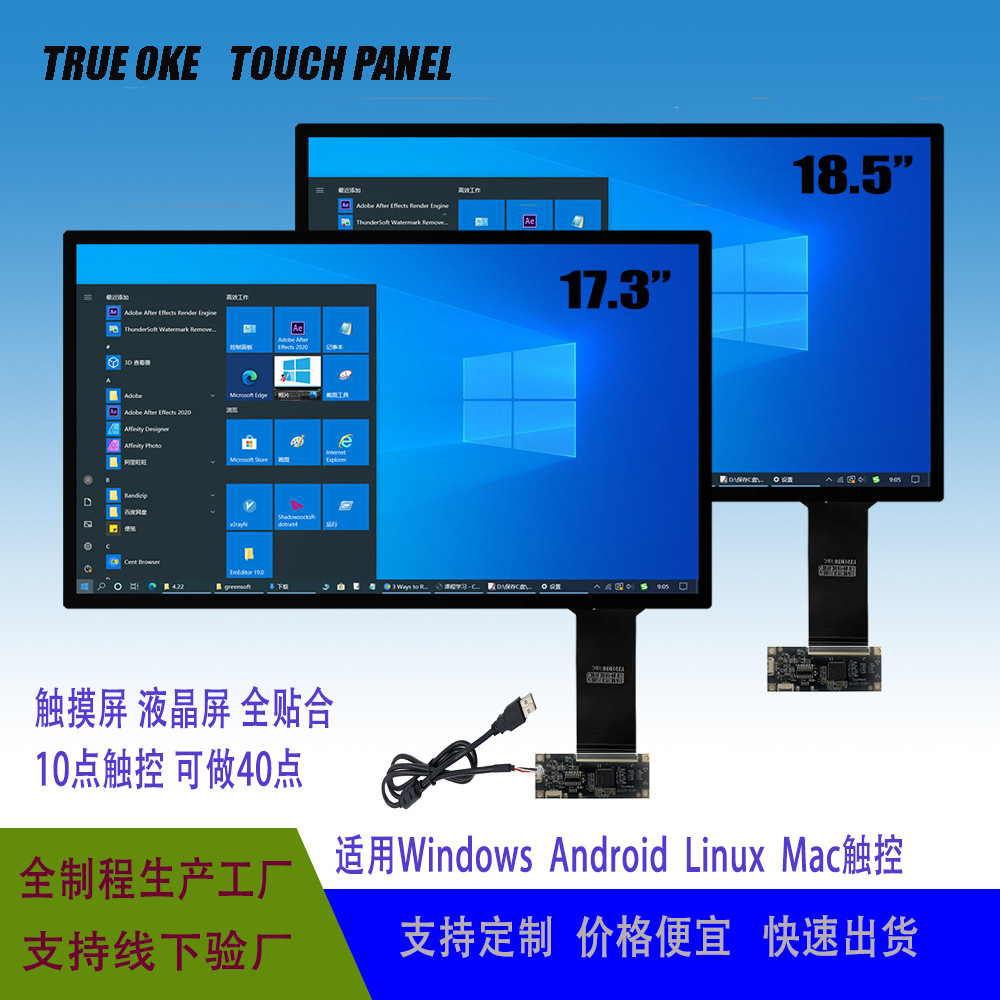 17,3-дюймовый экран конденсатора 17,3-дюймовый производитель сенсорного экрана поставляет промышленное контрольное сенсорный экран USB интерфейс G+G