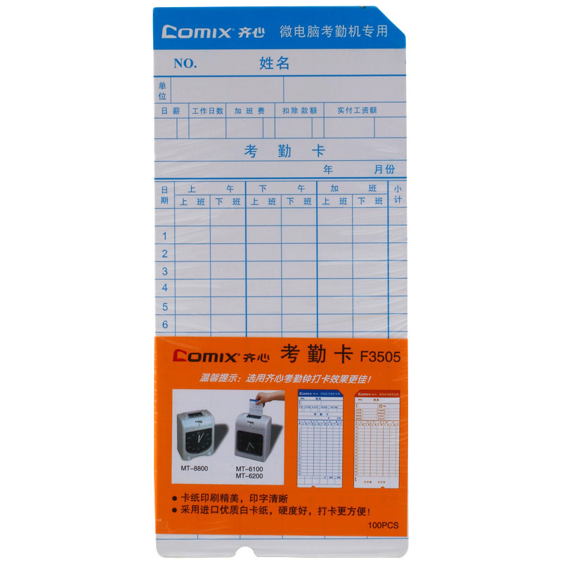 齐心 F3505 Двусторонняя карта посещаемости 300G Белая карта/100 листов/упаковка