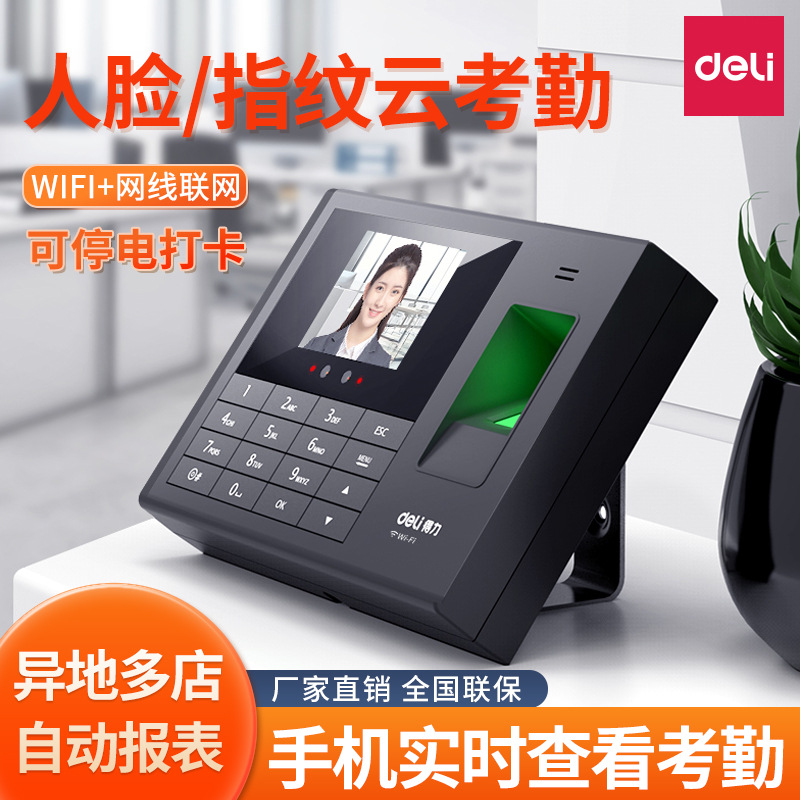 Deli 34521 Упонял станок, машина для регистрации сотрудников, чтобы сканировать лицо и сканирование машины регистрации отпечатков пальцев Smart Cloud