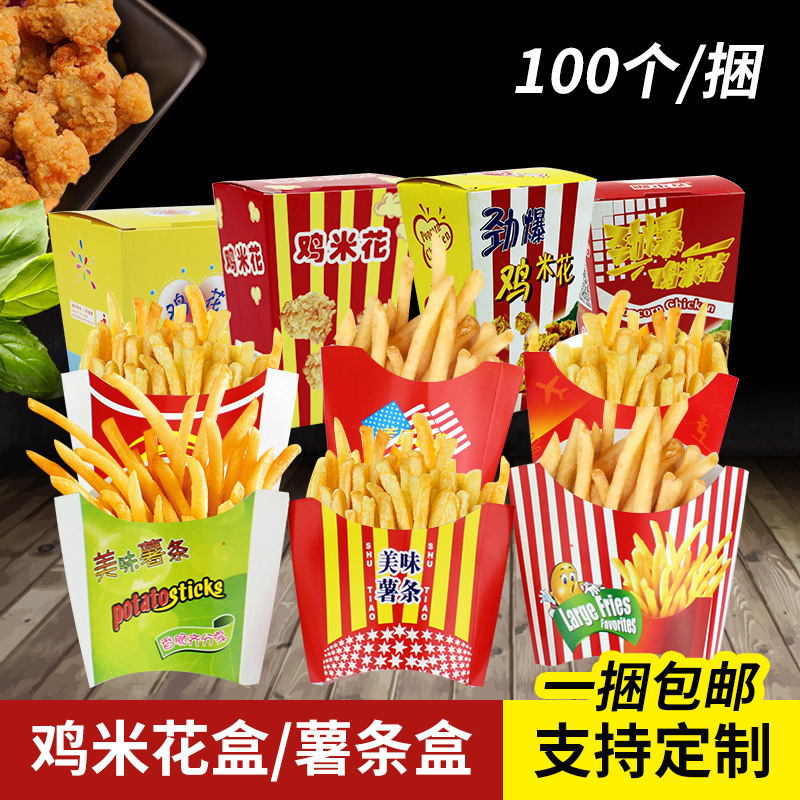 Картофель фри, вынос с одноразовой упаковочной коробкой с закусками, маленькая, большая, большая, большая, куриная рисовая цветочная коробка.