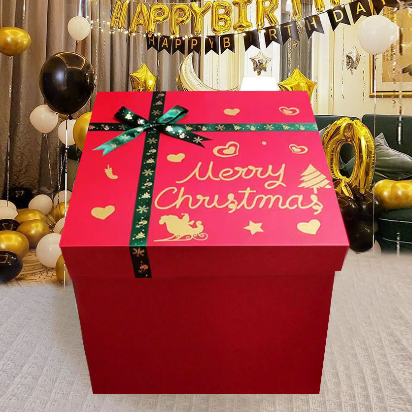 Рождественская красная вместительная и большая подарочная коробка, подарок на день рождения