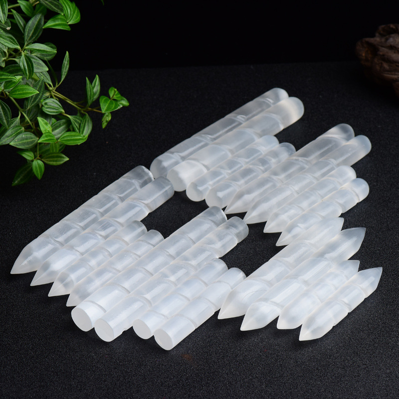 Натуральная прозрачная гипсовая колонка с гипсовой палочкой с обеих сторон и две стороны заостренного кристаллического шерохого магнитного стержня украшения