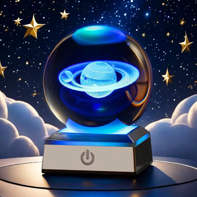 Деревянная светящаяся базовая базовая 3D внутренняя резьба хрустальная шарика галактика Солнечная система творческий настольный настольный свет.