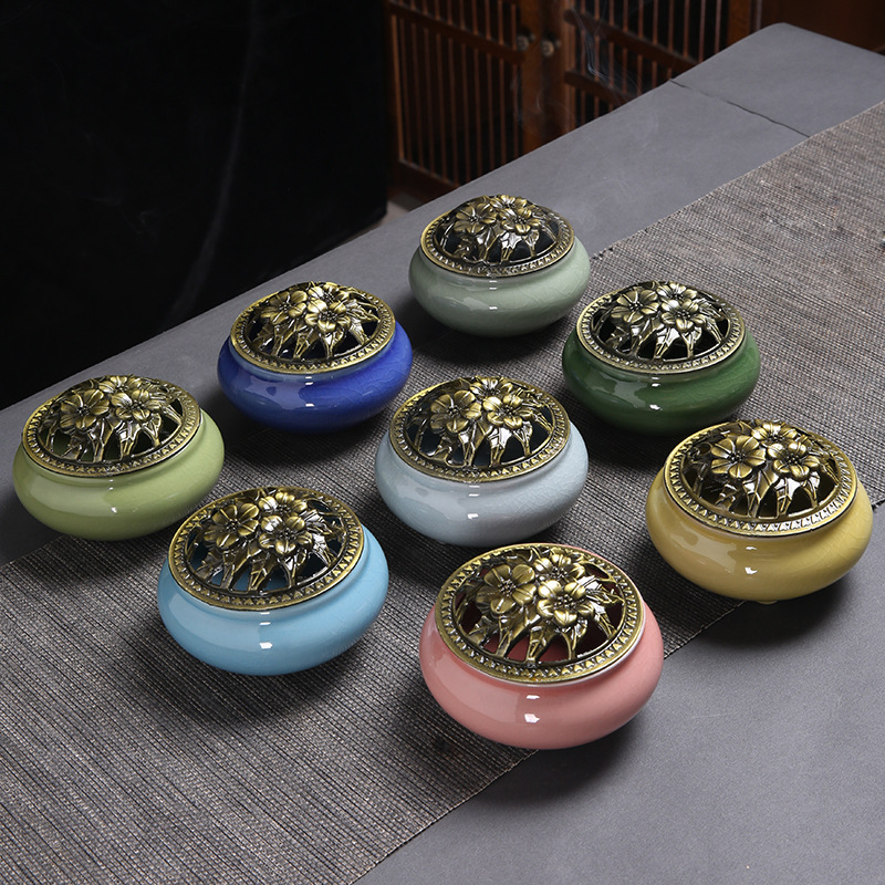 Металлическая курильница для благовоний, керамическая крышка, дракон и феникс