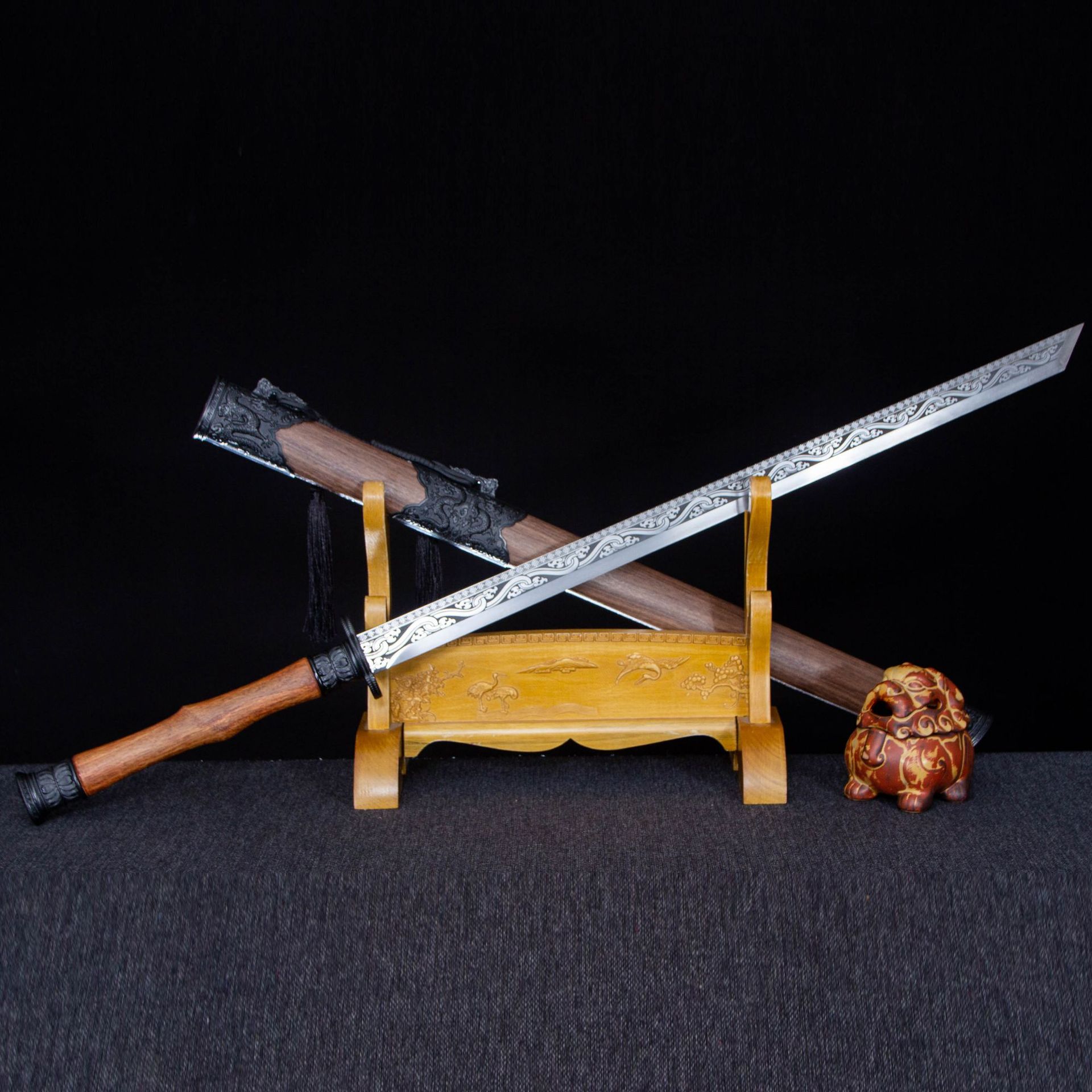 Лонгкуанский город Дракон Король Король Меч Хан Меч интегрированные ручные заготовки с холодным оружием марганцевой стальной коллекции и украшения домашний фильм и телевидение не разрезано
