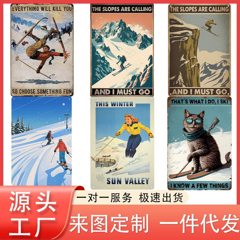 Трудовые лыжные лыжи творческая железная живопись алюминиевая тарелка рисовать настенные украшения бара кафе