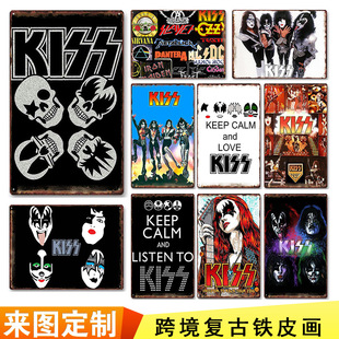 Американская ретро -железная стена декоративная живопись Tin Metal Decor Личная творческая железная живопись поцелуя группа