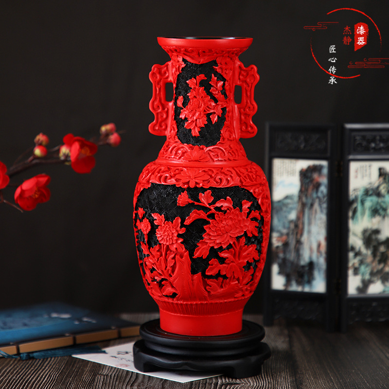 Янчжоу лаккера 10 -кишкола резных лаков -ваза одноклассники собирают офисный подарок китайский красный местный специализированные ремесла