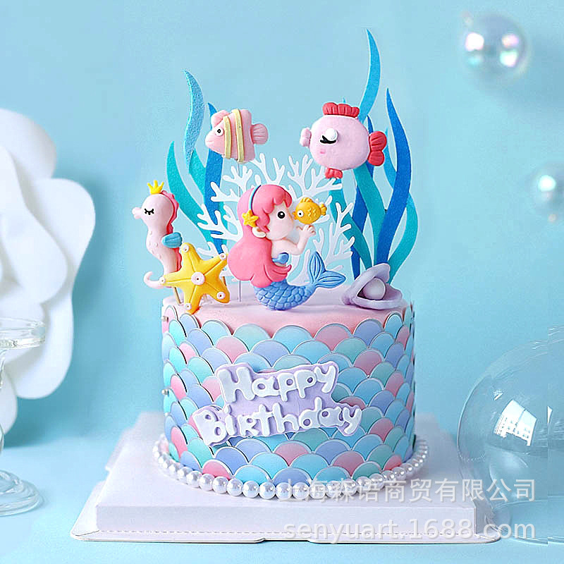 Запеченная торт декоративная милая сказка русалка Морская серия плагин -в День рождения торт десертный десерт украшение