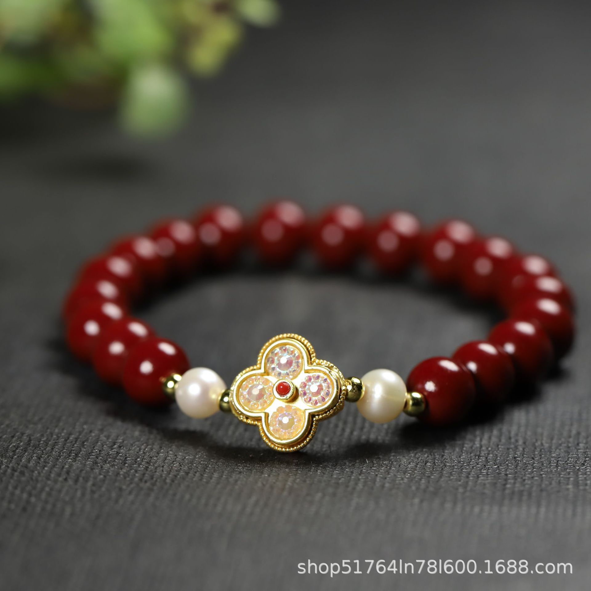 Браслет, аксессуар, оберег на день рождения из грецкого ореха ручной работы, оптовые продажи, цвета киновари, четырехлистный клевер