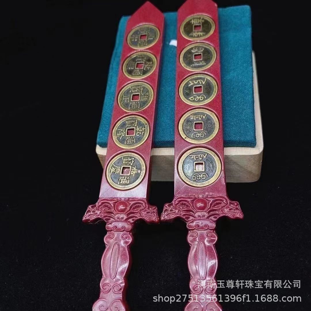 Natural Cinnabar Новая модель инкрустации пять денег императора, чтобы водить злых духов Нафу Семь звездного меча Домины с высоким содержанием Песчаной Песчаной Меч Сокровищ