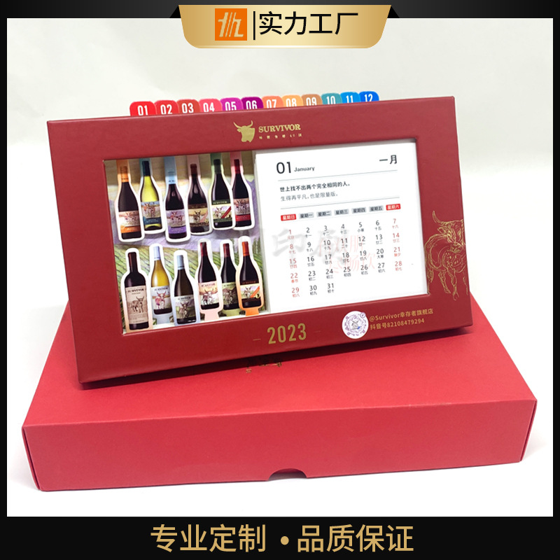 Красный настольный календарь, цветные карандаши, держатель для ручек, комплект, китайский стиль, подарок на день рождения, оптовые продажи