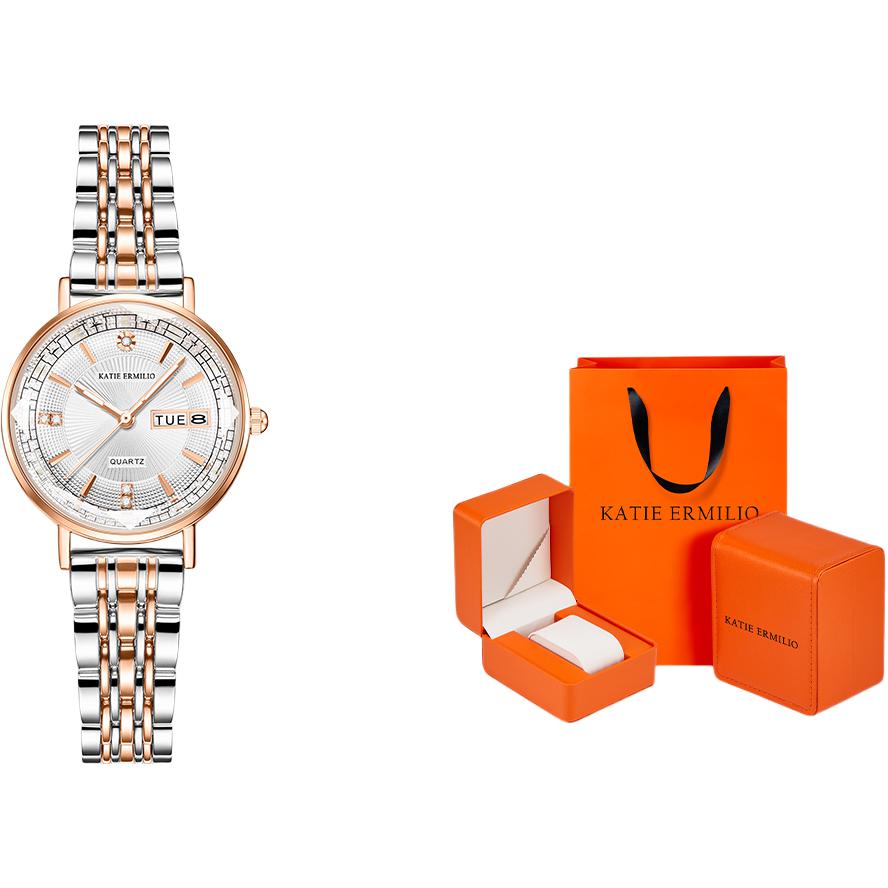 Кварцевый календарь, ремешок для часов из нержавеющей стали, белый циферблат, женские часы, легкий роскошный стиль, кварцевый механизм