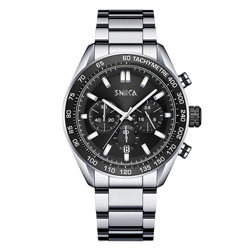 Трендовая модная иголка, мужские часы, ремешок для часов, мужской водонепроницаемый кварцевый календарь, черный циферблат из нержавеющей стали, классическая подарочная коробка, из натуральной кожи, 30м, кварцевый механизм