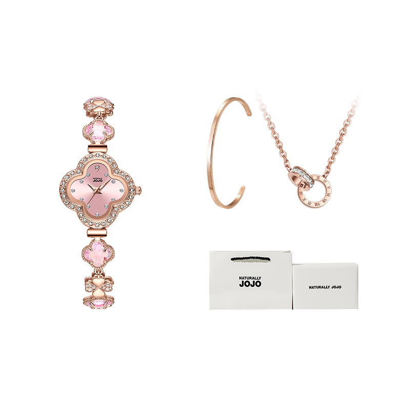 Счастливый клевер, браслет, кварцевое ожерелье, розовый циферблат, индивидуальные женские часы, высококлассная импортная универсальная подарочная коробка для отдыха, кварцевый механизм, европейский стиль