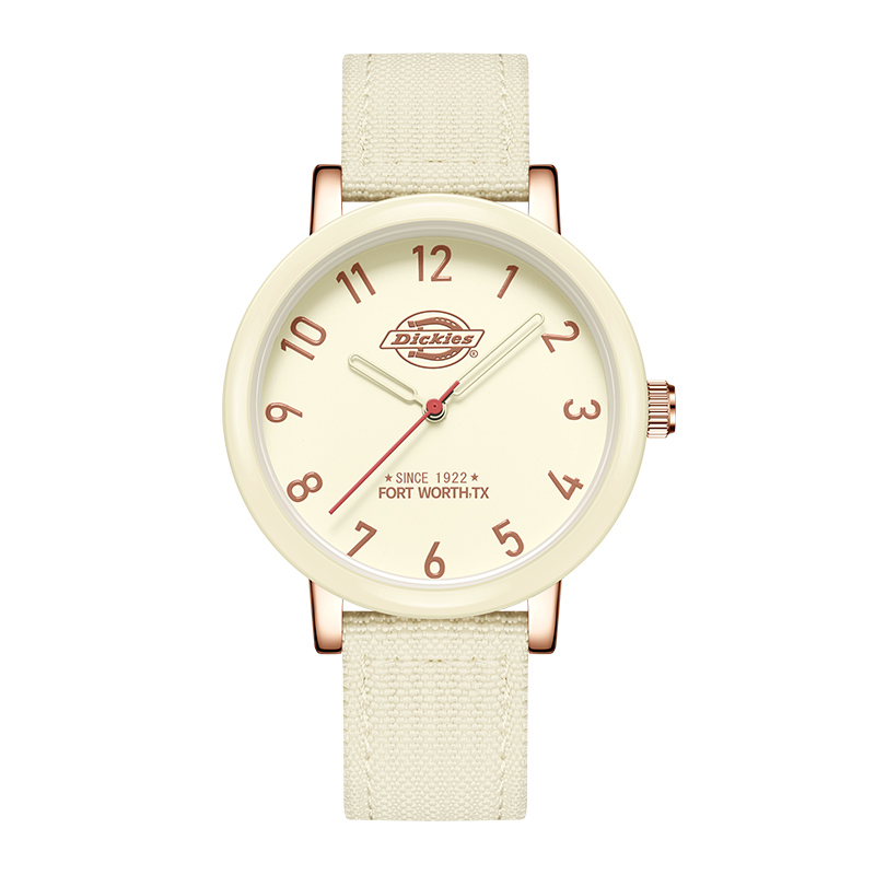 Dickies Нейлоновый кварцевый ремешок для часов, бежевый циферблат, классические универсальные высококачественные трендовые комфортные женские часы, кварцевый механизм, простой и элегантный дизайн, подходит для студента, европейский стиль