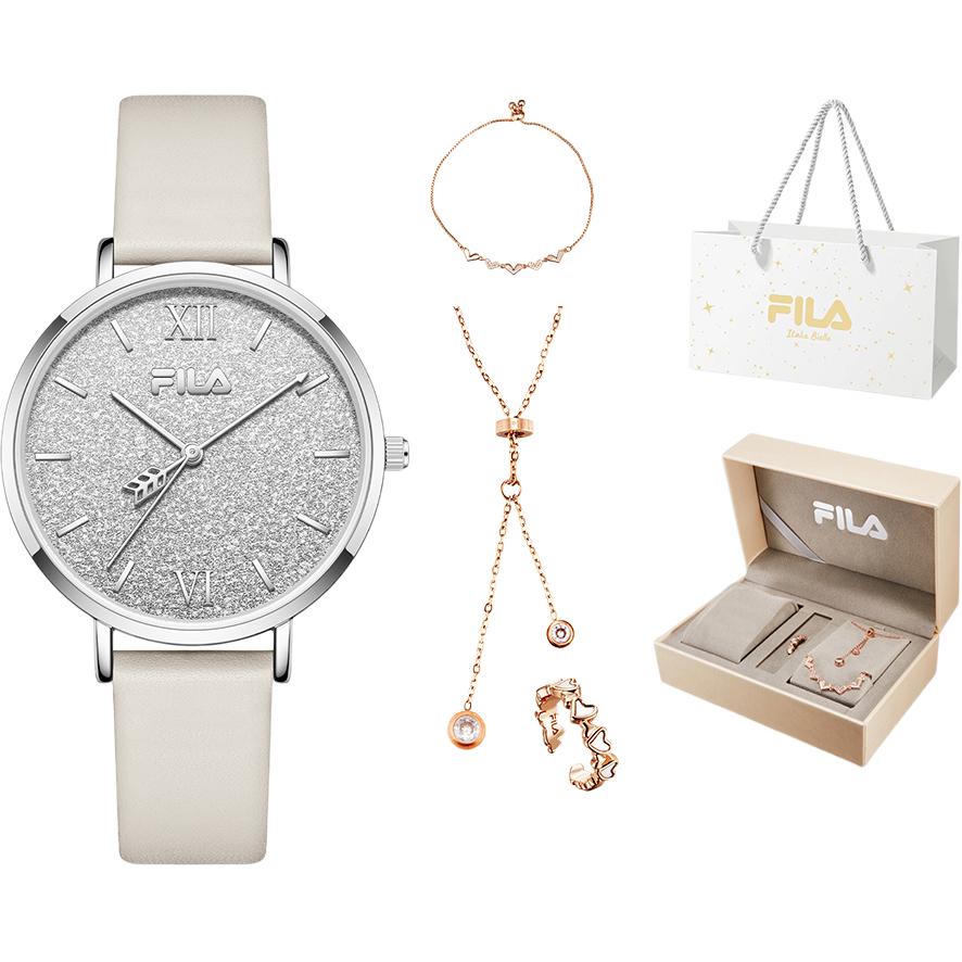 FILA Кварцевый ремешок для часов, серебряный циферблат, модные трендовые женские часы для отдыха, кварцевый механизм, легкий роскошный стиль, простой и элегантный дизайн