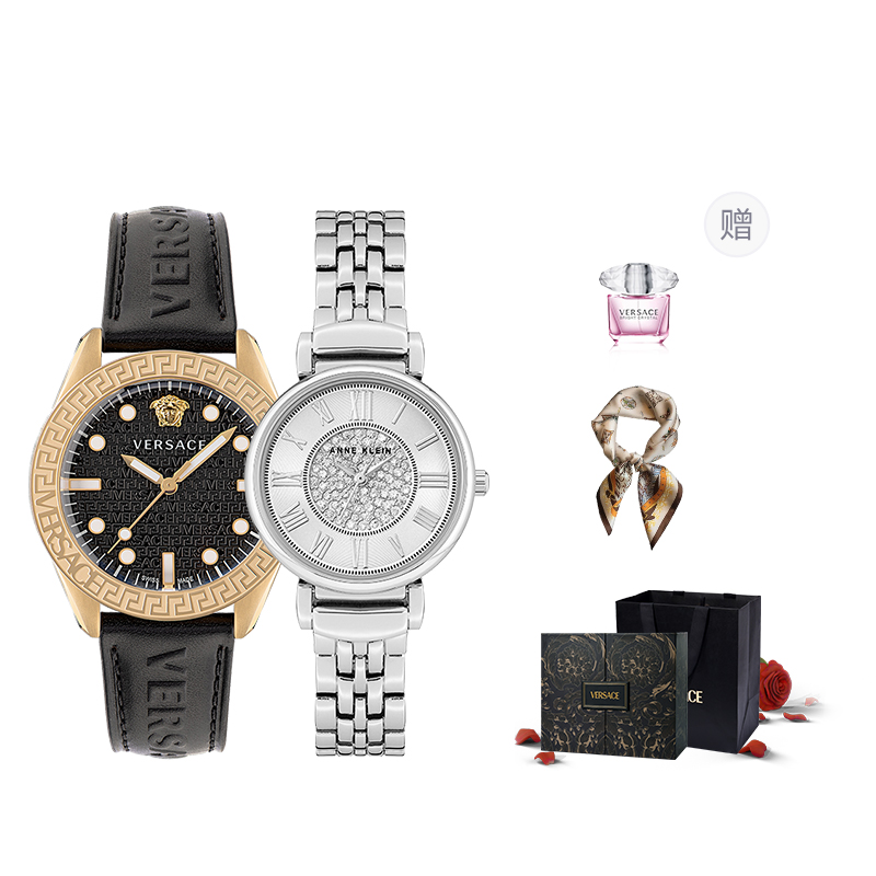VERSACE Versace, кварцевые часы, ремешок для часов из нержавеющей стали, зеленый циферблат подходит для мужчин и женщин, духи, водонепроницаемая подарочная коробка для отдыха для влюбленных, кварцевый механизм, Швейцария, легкий роскошный стиль