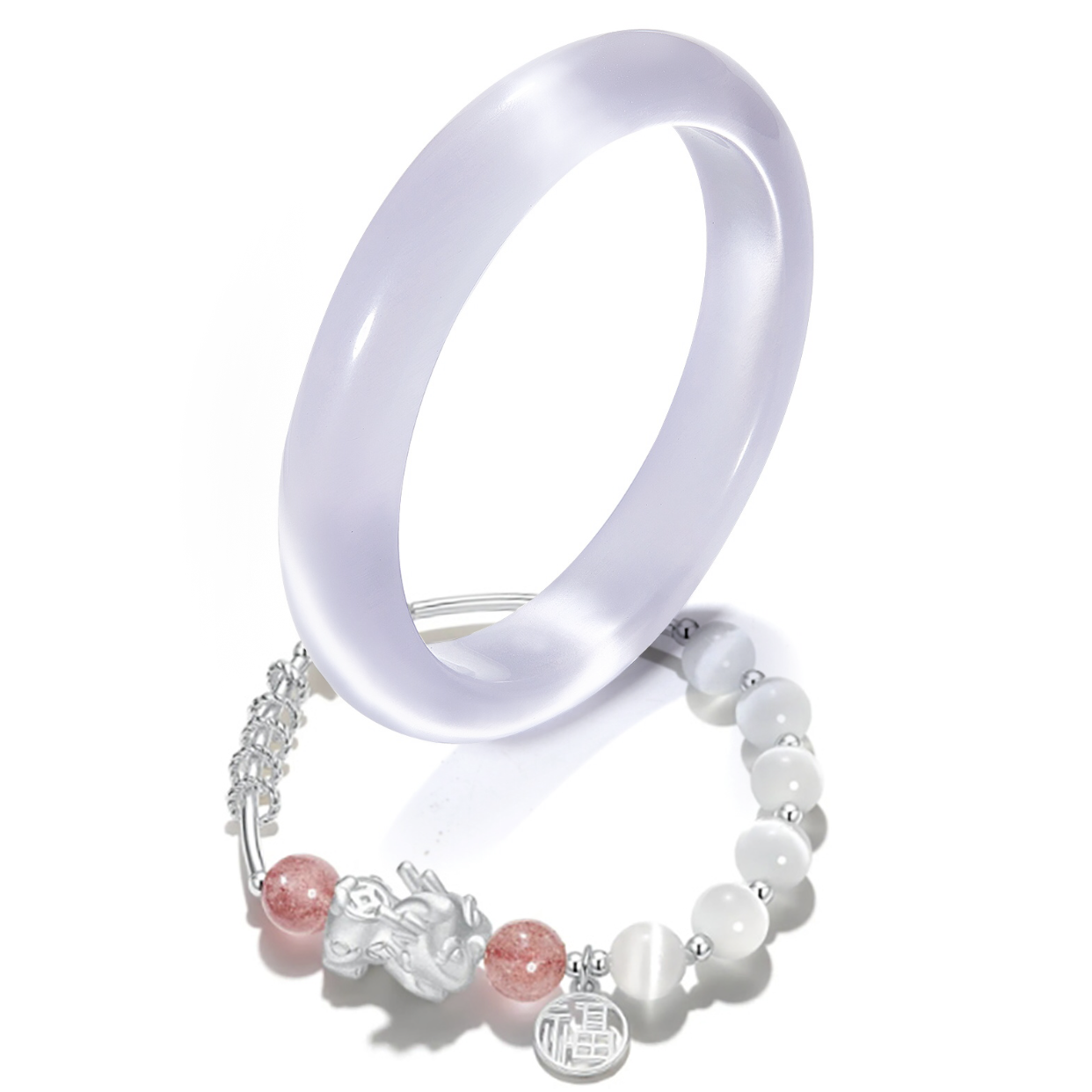 Белый лунный лунный свет холодный браслет красоты NRO Новый китайский стиль высококачественный смысл, ясные и теплые стеклянные глаза кошачьи глаза Элегантная ниша носите две ниши с браслетами, все совмещенные, хороший счастливый стеклянный браслет женски