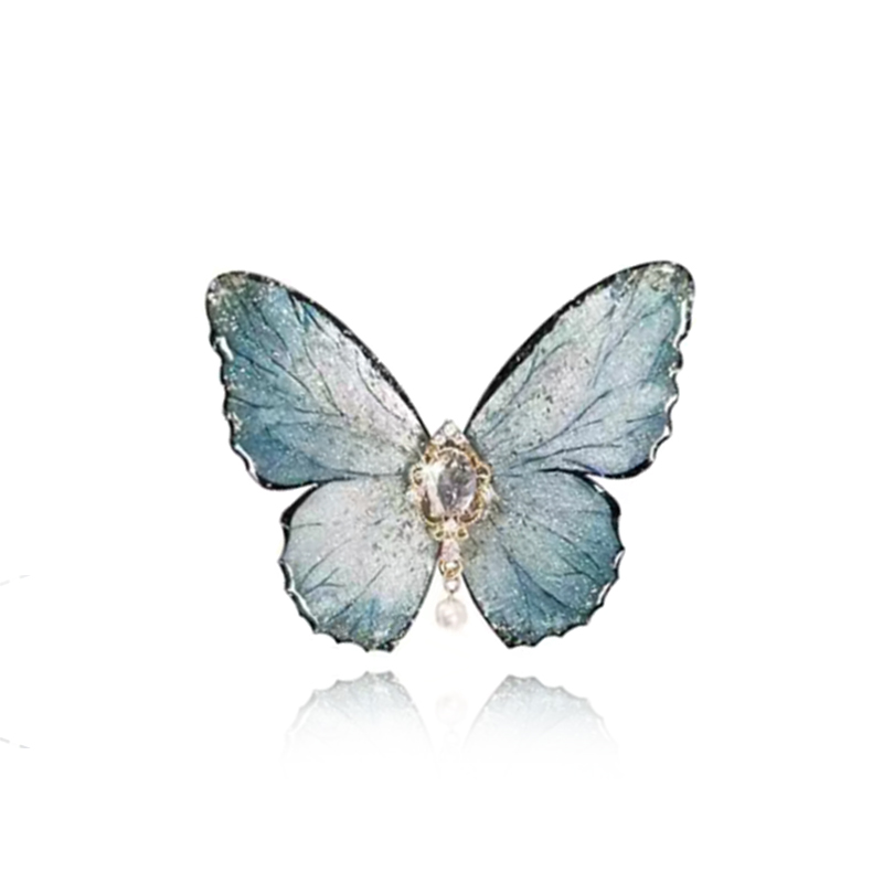 Простая сторона ретро -серая голубая бабочка с романтическим темпераментом блестящий темперамент Дворец Дворец Девушка Сторон