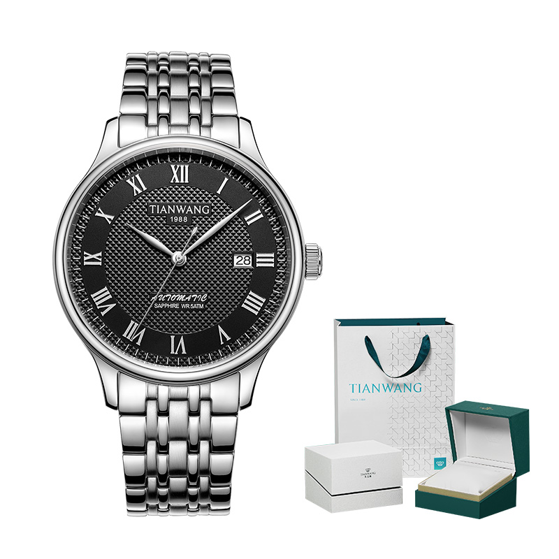 Король Тянванг Xindong Series Plaid Dial Mechanical Modering Китайские часы для мужчин White White Dial Водонепроницаемый