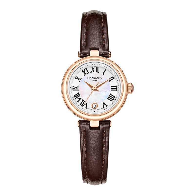 Ретро женские часы, кварцевый ремень, водонепроницаемые швейцарские часы, кофейный циферблат, тонкий ремешок, простой и элегантный дизайн, 27mm, кварцевый механизм