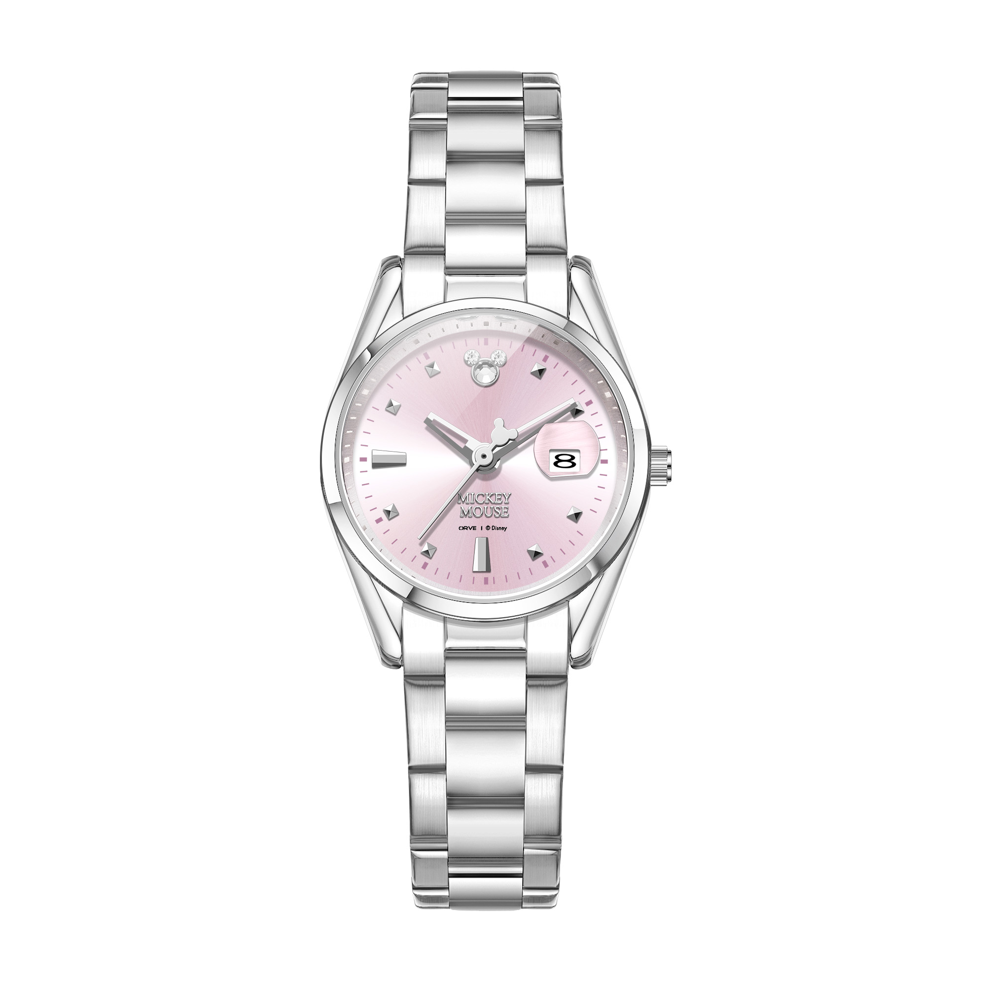 Disney Дисней, розовые швейцарские часы для школьников, высококачественная изысканная кварцевая подарочная коробка, ремешок для часов из нержавеющей стали, женские часы, розовый водонепроницаемый циферблат, легкий роскошный стиль, подходит для студента, п