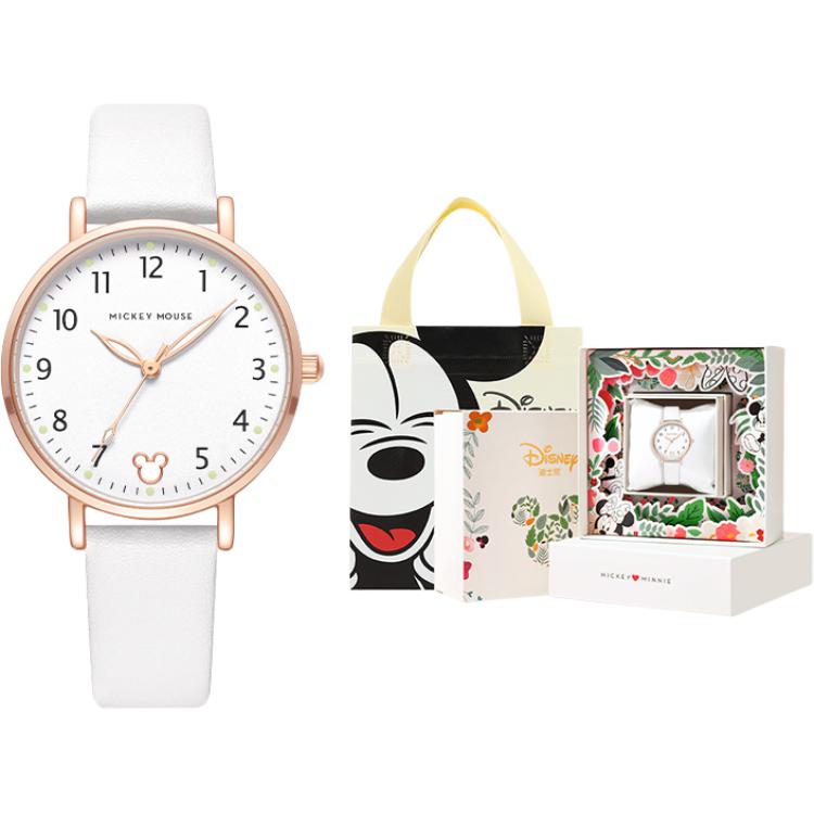 Disney Дисней, модные бесшумные кварцевые женские часы, белый точный прозрачный износостойкий циферблат, простой и элегантный дизайн, кварцевый механизм