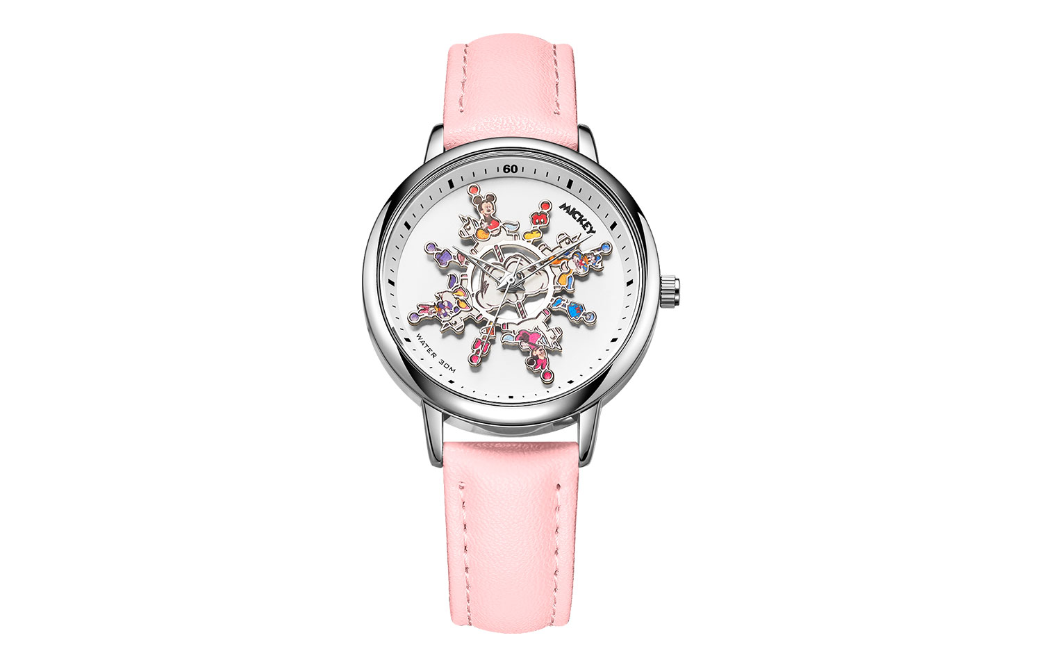 Disney Дисней, водонепроницаемый кварцевый ремешок для часов для принцессы, женские часы, розовый циферблат, подарочная коробка, кварцевый механизм