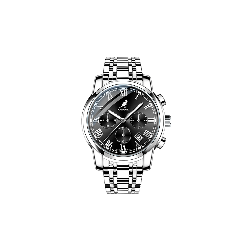 KANGOL Модный универсальный черный механический кварцевый ремешок для часов из нержавеющей стали, мужские часы, водонепроницаемый циферблат, спортивные швейцарские часы, простой и элегантный дизайн, кварцевый механизм, оптика