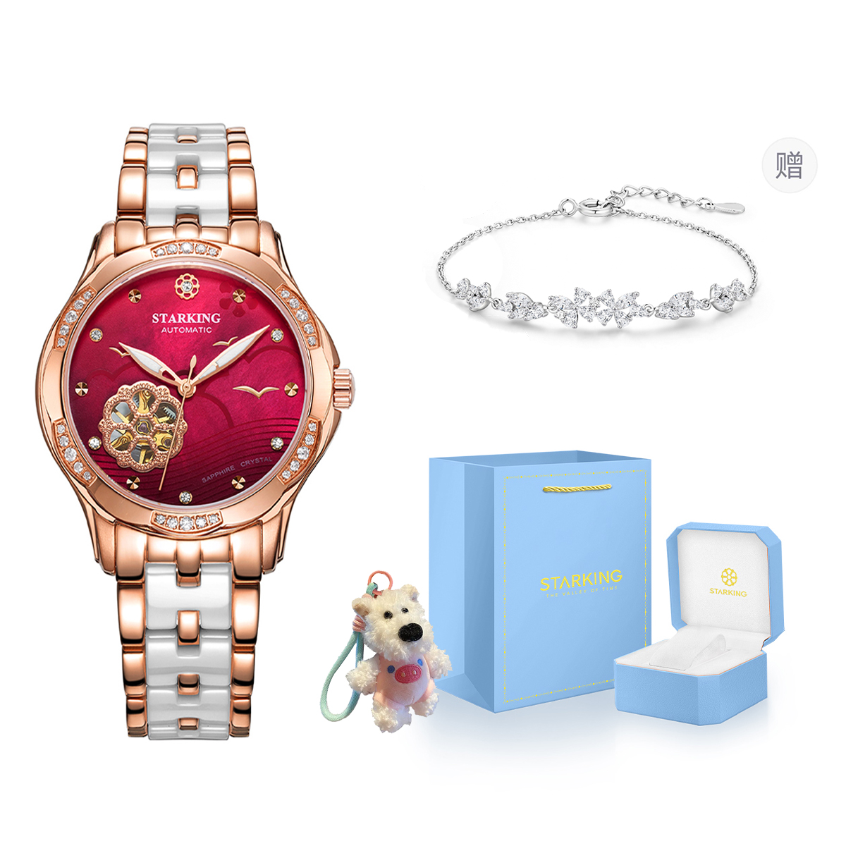 Звездный Император Звездный Океан Сердце серия Hollow Surface Fashion Trend Trend Ins Style Light Luxury Diamond INS Автоматическое механическое движение керамическое ремешок Национальные часы Женские часы Fritillar Color Dial 50 метров водонепроницаемой