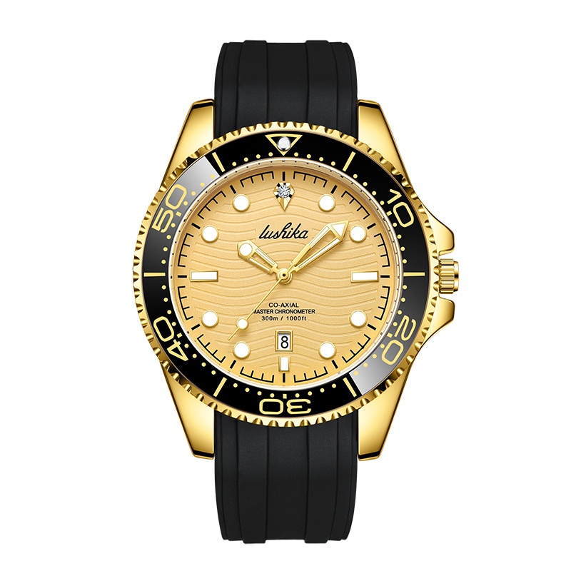 Модная трендовая спортивная яхта, кварцевый автоматический механический механизм, силиконовый ремешок для часов, мужские часы, золотой циферблат, подарочная коробка