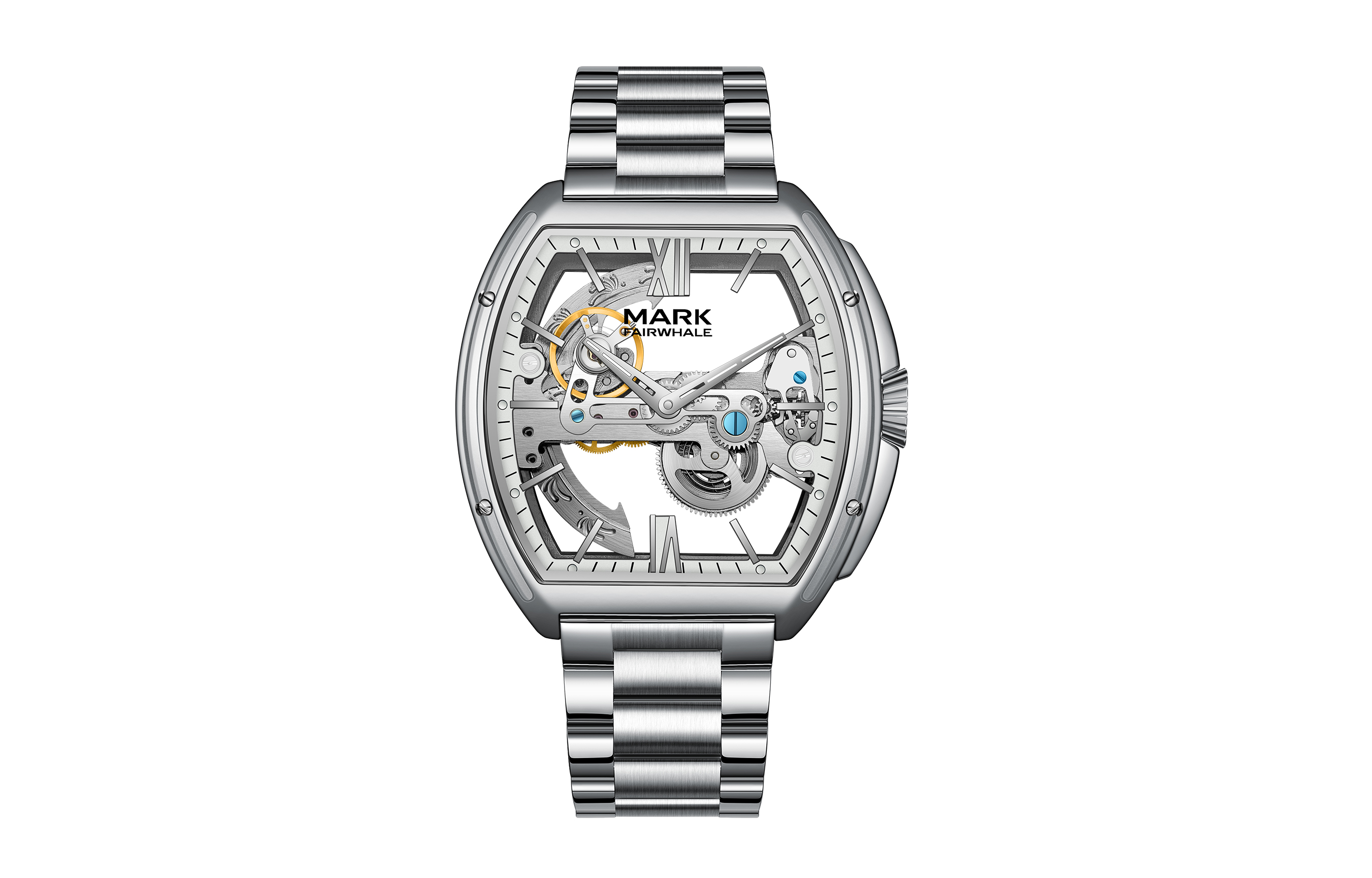 Механический двусторонний универсальный высококачественный трендовый модный водонепроницаемый механизм для отдыха, металлический ремешок для часов, мужские часы, белый циферблат