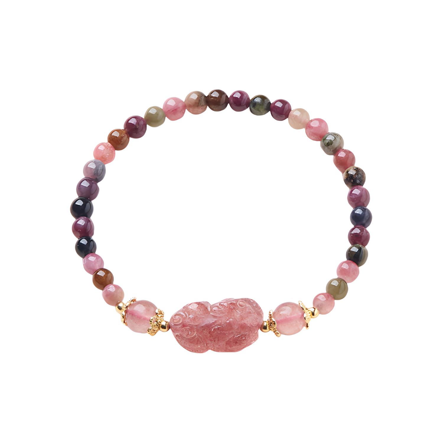 Радужное турмалиновое ювелирное украшение, свежий розовый турмалиновый браслет с одной бусиной подходит для мужчин и женщин для влюбленных, китайский стиль, на удачу