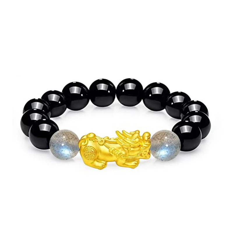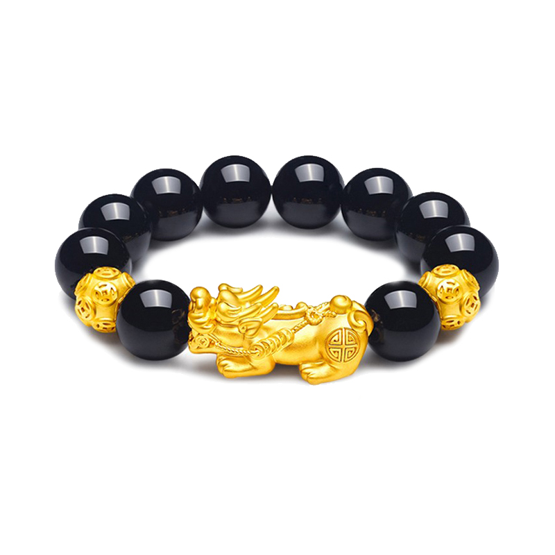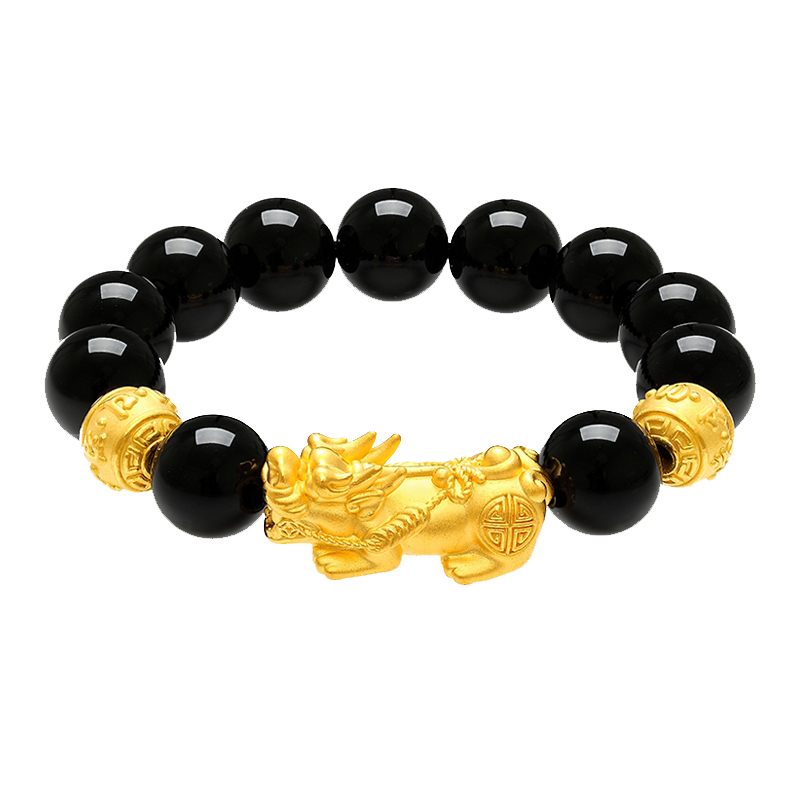 О любви о любви pixiu 3d твердый золото, набор зверя, перевод, бисера, новая китайский стиль китайский модный атмосфер #good Удачи черный агат Полный золото 999 по цене грамм золотой браслет мужчины