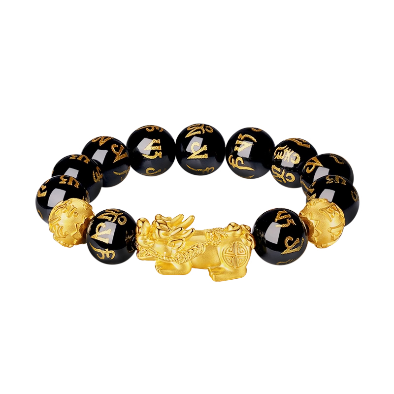 Aoi Pixiu Lucky Bead Bead Six-Character Mantra 3D твердый золото, глотающий зверь, новый китайский стиль китайского модного модного атмосферы #good Lucky Gold 999 по цене грамм браслеты мужчины