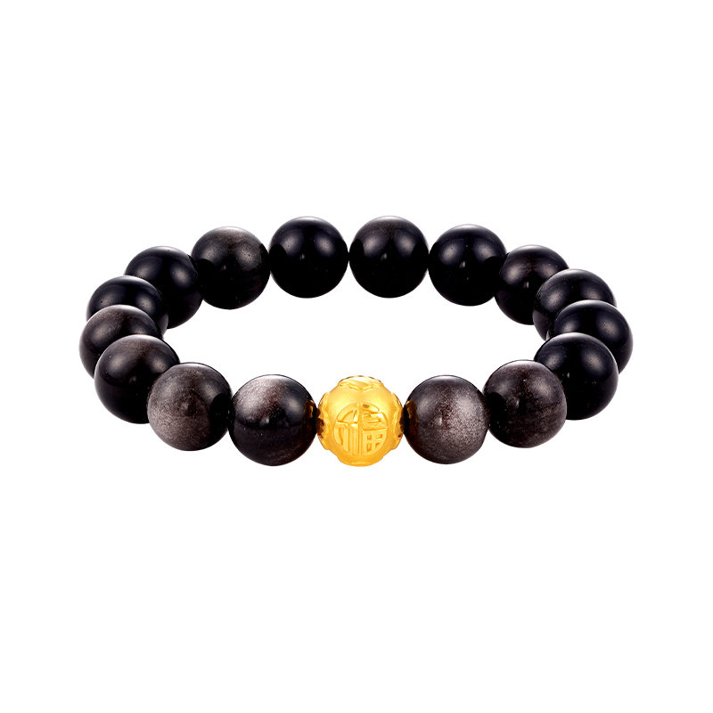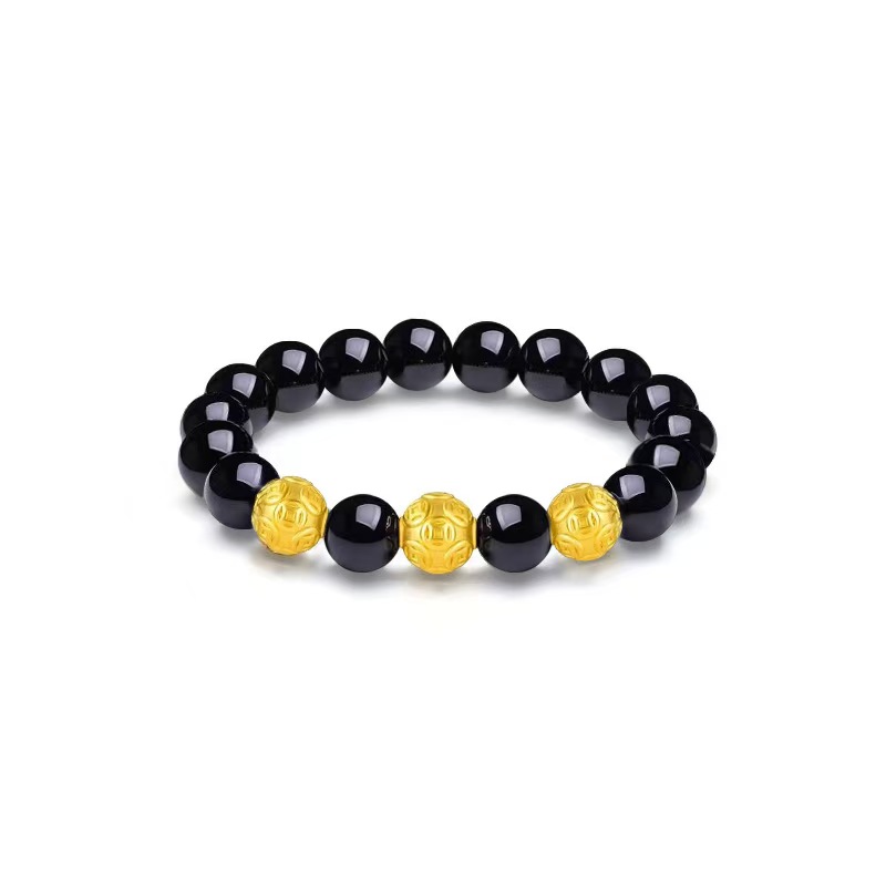 Zhou Jinsheng Chow king Sang Fu Персонаж Lucky Bead ubsidian медные монеты серебряные обсидиан круглый бусинок Отец привлекает богатство и роскошный сдержанный