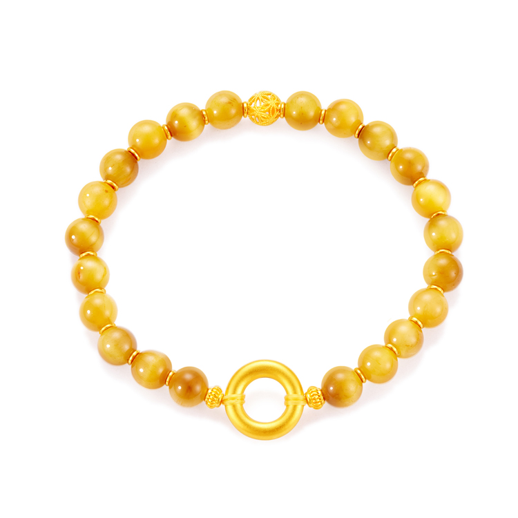 Браслет с одной бусиной, милый золотой кварц, на удачу, китайский стиль, изысканный стиль