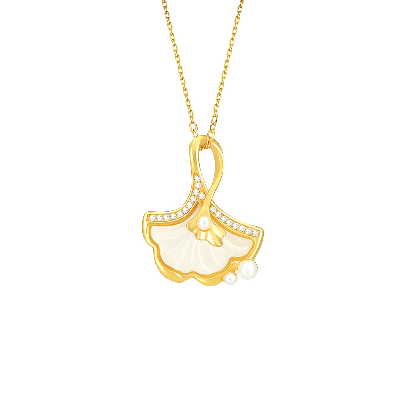[中国黄金 CHINA GOLD 鱼你相伴 新中式轻奢时尚吊坠 鲤鱼跃龙门 可爱小鱼锁骨链 小众高级#好运 升学升职加薪 百搭日常特色国潮 项链 青白玉 女款]
