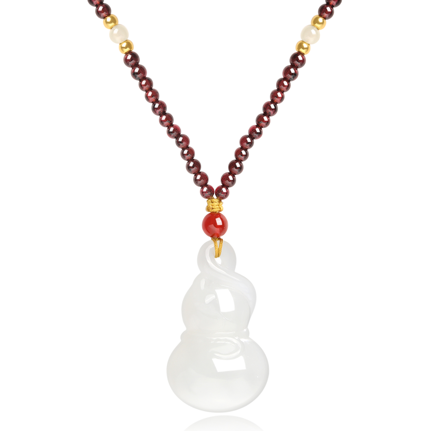 [老凤祥 福蛇相伴葫芦 新中式国潮热情洋溢 吉祥如意福禄双全 小众时尚百搭高级石榴石珠串链#好运 项链 白玉 男女同款情侣款]