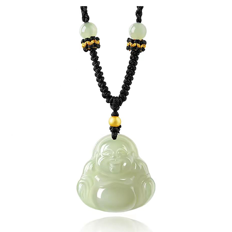 [【喜乐福慧|高品质】 老凤祥 弥勒佛项链 新中式国潮温润大气 本命佛笑口常开福气满满 轻奢高级925银锁骨链#好运 和田玉 青白玉 女款]