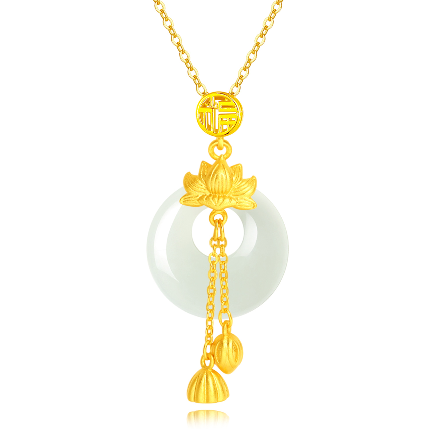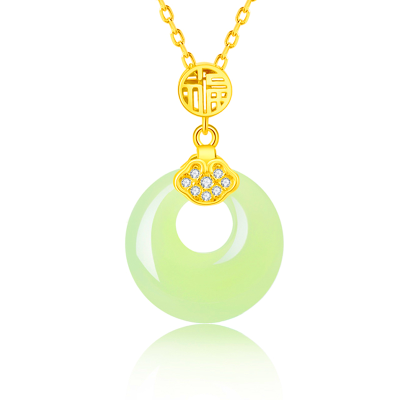 Модный золотой защитный амулет, пряжка, замок, универсальная цепочка до ключиц для матери, подарочная коробка, ожерелье из нефрита, китайский стиль