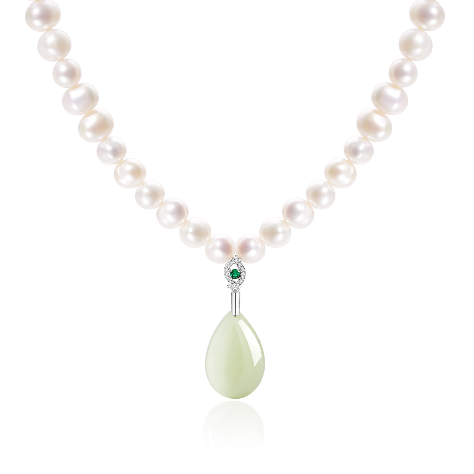 [【福气平安】 翡翠王朝 碧婉盈盈和田玉 新中式国风温润大气 平安喜乐显白日常穿搭 富贵转运珠高级珠珠链 #好运 项链 碧玉 女款]