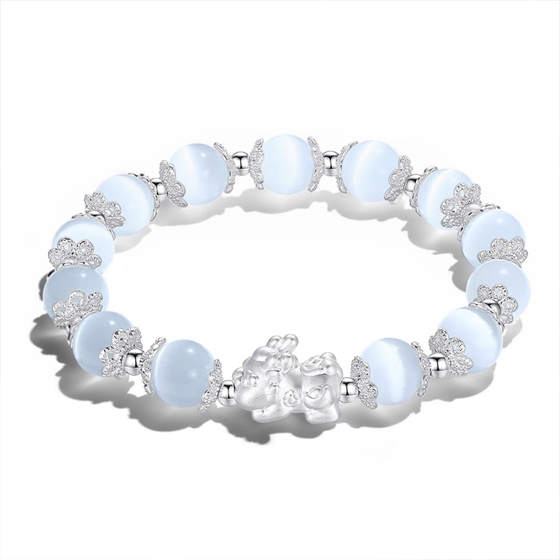 Детский универсальный стеклянный браслет подходит для мужчин и женщин для влюбленных, серебро 999 пробы, на удачу, китайский стиль, китайский гороскоп, кошачий глаз