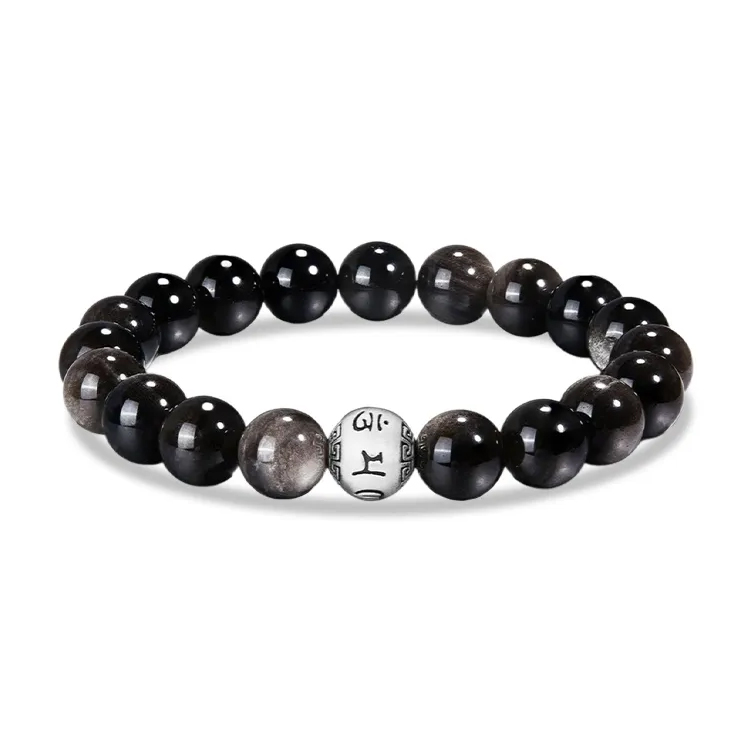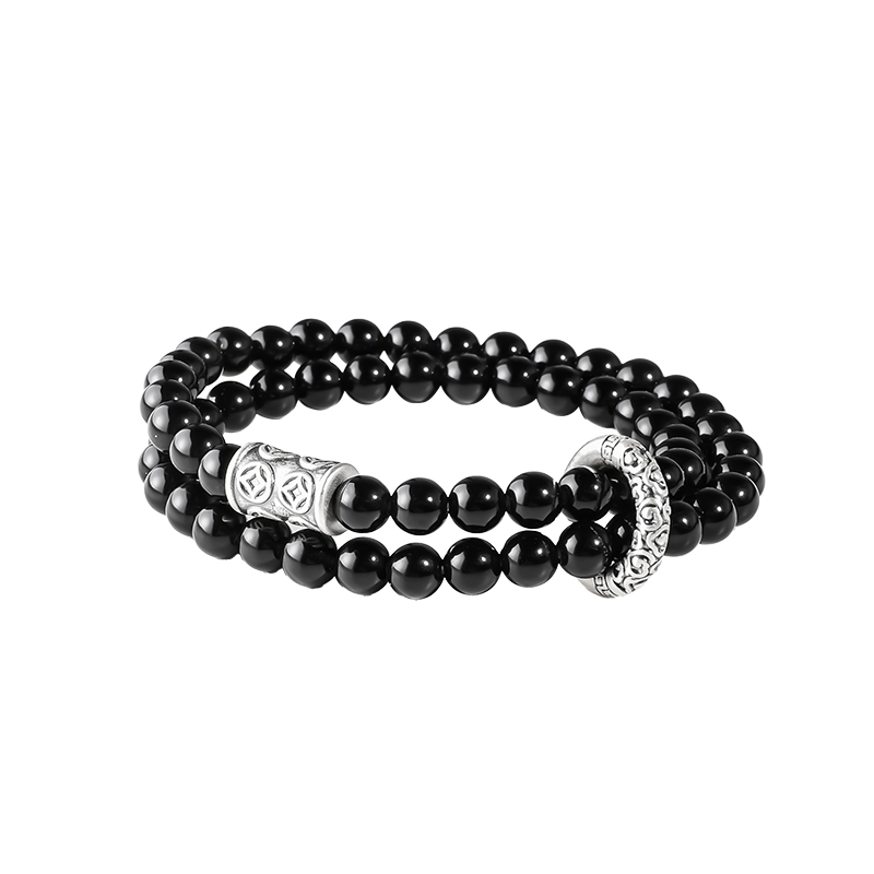 Шестизначная мантра CHINA GOLD, новый китайский стиль, ретро, национальная тенденция, высококлассное чувство #удачи, серебро S990, браслет из обсидиана, одинаковый стиль для мужчин и женщин, модель для пар