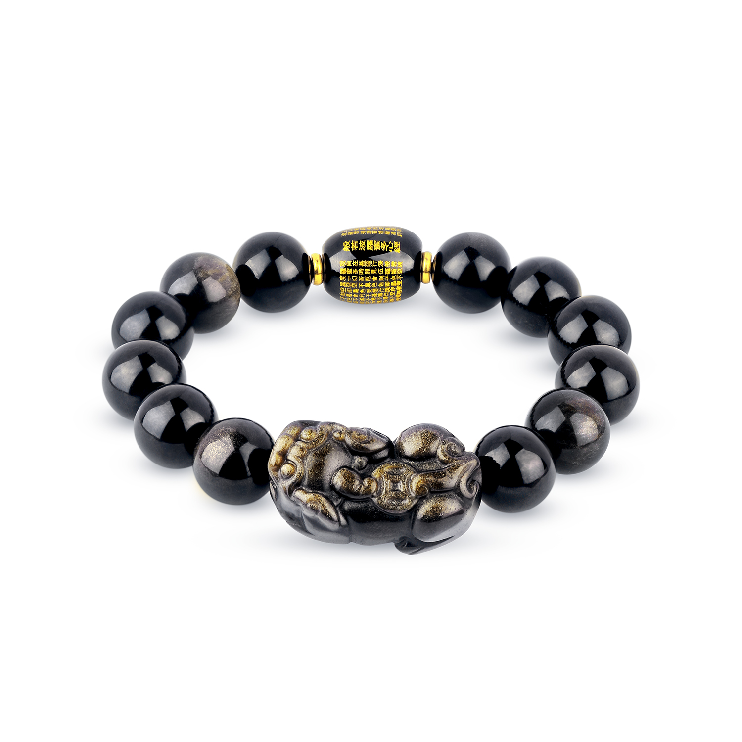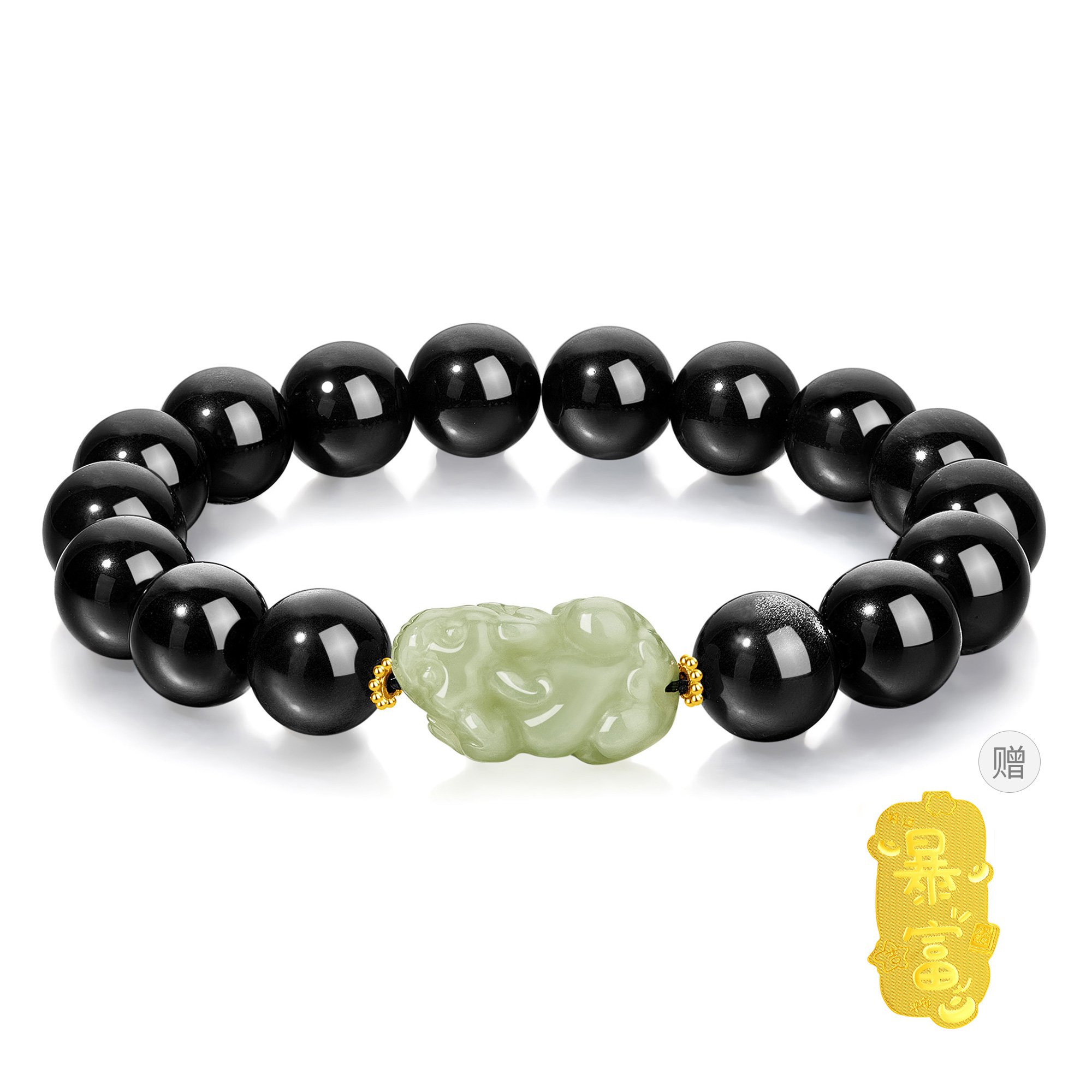 Lao Fengxiang [Pixiu сильно привлекает золото] Обидианский браслет Pixiu Fortune Beads Bearl's Новый китайский стиль атмосферного стиля атмосферного и универсального бусин для благословений и любимого подарочной коробки Tiger Eye Stone Hotan охота на нефр