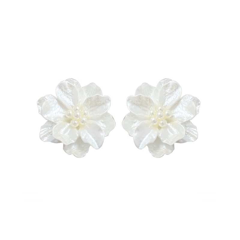 Белые изысканные небольшие дизайнерские элегантные милые свежие брендовые серьги в форме цветка из жемчуга, изысканный стиль, легкий роскошный стиль